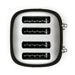 Den flade brødrister har plads til 4 almindelige skiver brød. Den har desuden elektronisk timer, så bollerne ikke brænder på.