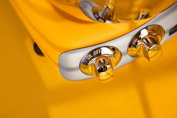 Røremaskinen er nem og simpel at betjene, da den har frontstyrede betjeningsknapper. Disse er i denne model blevet ændret fra plastik til forkromede zink-knapper. Det samme er håndtaget til fastspænding af armen.