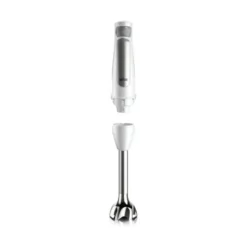 Stavblenderen er udstyret med easy-click, som gør det nemt for dig at klikke de medfølgende delene af og på. Der medfølger et bæger på 600 ml og en minihakker på 350 ml.