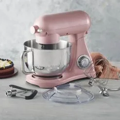 | Tilbehør medfølger | Røreskål, piskeris, dejkrog, K-spade og stænklåg |