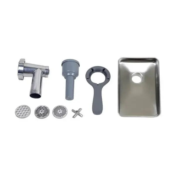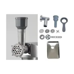 Kødhakker der passer til Caso KM 1200 Chef køkkenmaskine. Med kødhakkeren får du 3 forskellige hulskiver (grov, medium og fin). Brug kødhakkeren til fremstilling af fx pølser eller bagværk. Nedskubber og bakke følger også med.