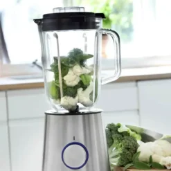 Blenderen har en glaskande, der kan rumme 1,5 liter, så er der nok til lækre pandekager til dig selv, eller måske til at dele med en god ven. Med en effekt på 1000 watt og pulsefunktion er du sikret, at blenderen snildt klarer både isterninger og frosne bær.