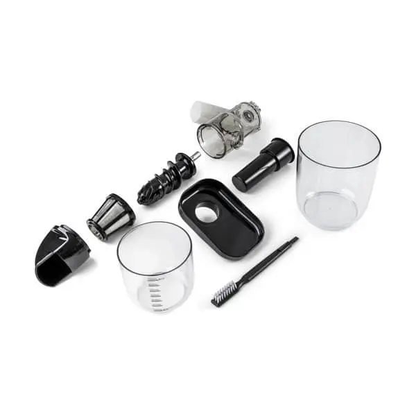 Når du er færdig med at fremtrylle lækker juice, kan du nemt rengøre slowjuiceren med en våd klud. Til de små dele kan du bruge den medfølgende børste.