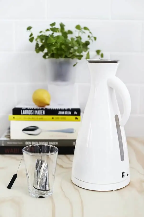 Med Eva Solo er den kedelige el-kedel taget til et nyt og mere stilet niveau. El-kedlen har skjult varmelegeme, automatisk slukning og 360 grader fri bevægelighed. El-kedlen kan indeholde op til 1,5 liter. Farve: hvid.