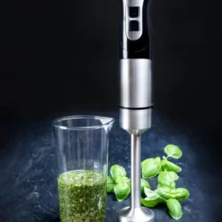 Mulighederne i køkkenet er store med stavblenderen fra Gastronoma – uanset om du pisker flødeskum, purerer babymos eller blender smoothies og pesto. Med til stavblenderen følger nemlig et piskeris, en minihakker og bæger, så du er godt udstyret.