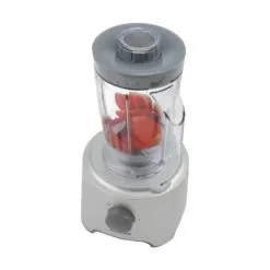 Foodprocessoren har en effekt på 800 Watt og har 2 forskellige hastighedsindstillinger, så du har mulighed for at tilpasse hastigheden til dit eget behov. Pakken indeholder en plastikskål med en kapacitet på 2,1 liter. Der følger også en blender med i pakken.