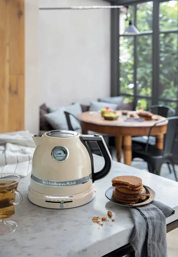 KitchenAid går ikke på kompromis med funktionalitet og bestemt heller ikke med design. Den buttede elkedel er designet med dobbeltvægge, så den holder vandet varmt indeni og holder sig kold udenpå.