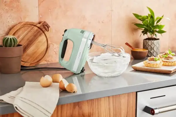 Elpisker med præcis elektronisk styring med 9 hastigheder med mulighed for langsom start. KitchenAid elpiskeren blander alle ingredienser fra en langsom omrøring til hurtigt piskning uden sprøjt.