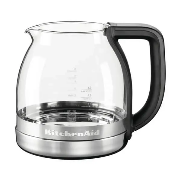 Tefilteret i rustfrit stål er aftageligt, og tebryggeren fungerer derfor også som en helt almindelig elkedel, der koger vandet hurtigt og støjsvagt. Den har det velkendte KitchenAid Artisan design med kapacitet på 1,5 liter, lavet i glas og rustfrit stål.