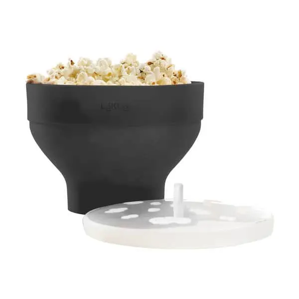 Du skal blot hælde tørrede majs i skålen, lægge låget på og poppe 1-3 minutter i din mikroovn. Lékué Popcorn maker er lavet af ren platinum silikone – det er en blød og smidig silikone, der ikke indeholder ‘fyldstoffer’, som fx flourerede stoffer eller alle andre kemikalier, som kan afgives til din mad.