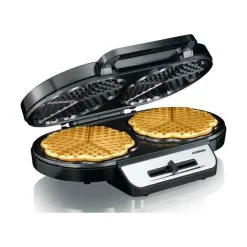 Det kan være svært, at vente på at vaflerne bages færdige. Med dette dobbelt vaffeljern fra Melissa, kan du bage to sprøde vafler på samme tid – perfekt til familien..