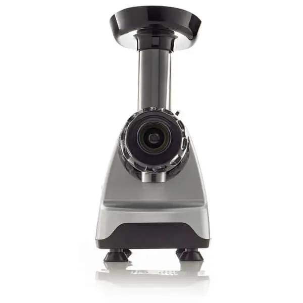 Maskinen er som du måske allered eved, ikke blot en slowjuicer. Maskinen kommer nemlig med 6 forskellige tude, så den kan bruges som kødhakker, den kan kværne kaffe og krydderier, lave pasta, grissini, og fx nøddesmør.