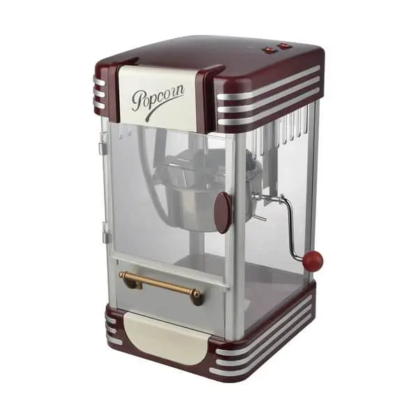 Popcornmaskinen har et flot retrolook og en kompakt størrelse. Den er derfor også flot at have stående på køkkenbordet.