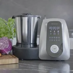 OneTouch Thermo Cooker forener 10 køkkenmaskiner i én – du får derfor en maskine med en høj funktionalitet, som sparer dig en masse plads i køkkenskabene. Maskinen har 18 programmer med bl.a. steam og selvrens. Maskinen har desuden den banebrydende funktion, at du kan bruge app kontrol med din smartphone. Hertil får du et flot design med en skål i poleret rustfrit stål med en kapacitet på 2 liter. De skridsikre fødder er din sikkerhed for, at maskinen står fast på køkkenbordet mens du tilbereder dine retter.