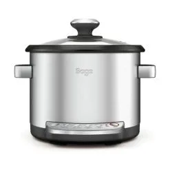 Sage The Fast Go Slow multicookeren er fyldt med smarte funktioner såsom hold-varm, sluk-selv, dampfunktion, risotto-funktion og et cool-touch håndtag. Multicookeren har desuden en kapacitet på 3,7 liter (op til 20 kopper tilberedt ris), en non-stick belægning i gryden, aftagelig ledning, låg i hærdet glas med dampventil.