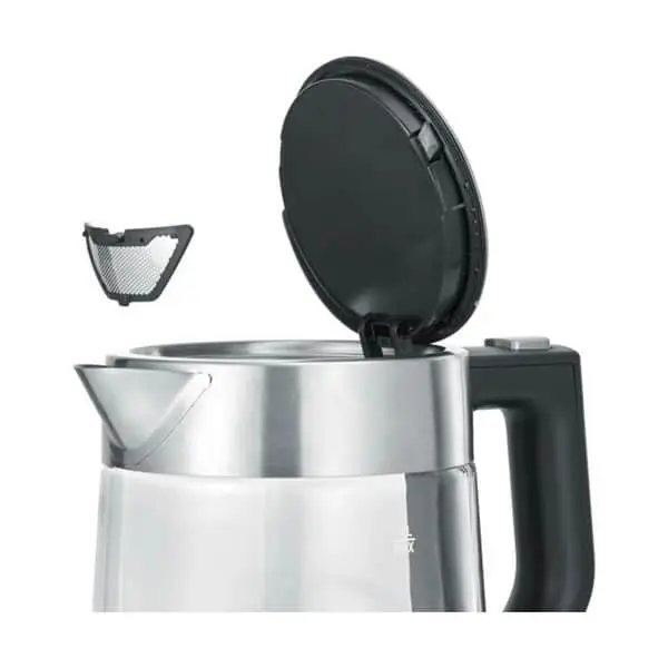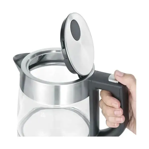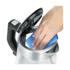 Denne 1 liters elkedel har skjult varmeelement og et 360 graders ledningsfrit system, og kedlen kan betjenes med blot én hånd. Der er fingerbeskyttelse på låget, som desuden har en ekstra stor åbning, så både rengøring og påfyldning bliver nemmere.