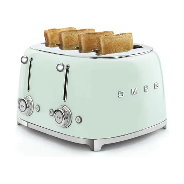 Rist dit brød med stil. Brødristeren fra SMEG har et elegant retro-design i rustfrit stål med bløde, afrundede linjer og en farve, der gengiver 50’ernes umiskendelige stil, som ser super fed ud på køkkenbordet!