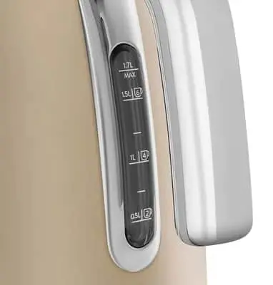 Det elegante 50’er design i rustfrit stål har powder-coating, som fremhæver elkedlens farve og gør overfladen let at rengøre, og det aftagelige anti-kalk filter mindsker mængden af kalk, der sætter sig i elkedlen.