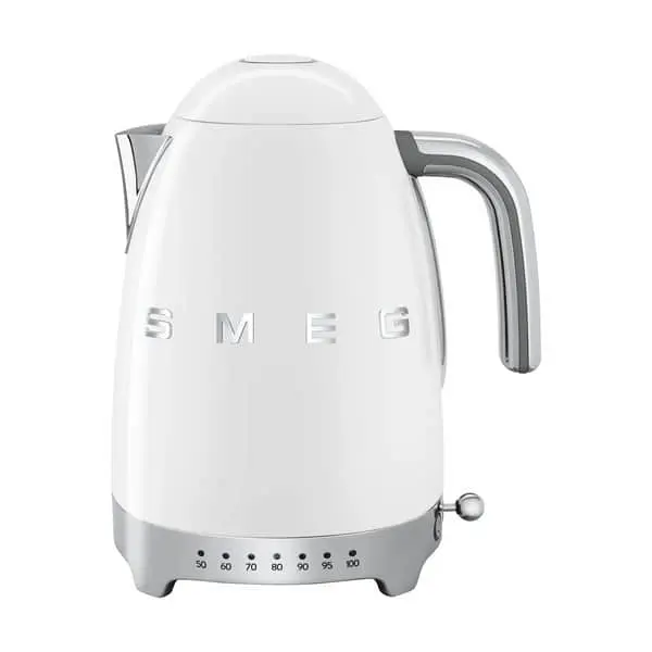 SMEG elkedlen har en smart variabel temperaturindstilling, hvor du kan vælge mellem 7 forskellige temperaturer (50ºC, 60ºC, 70ºC, 80ºC, 90ºC, 95ºC, 100ºC), hvormed du nemt indstiller, hvor varmt vandet skal være. Det betyder, at du kan indstille temperaturen på vandet, så det netop passer til den kop te eller kaffe, du er ved at brygge. Elkedlen har også hold-varm funktion, så du kan holde vandet ved den valgte temperatur i op til 20 minutter.