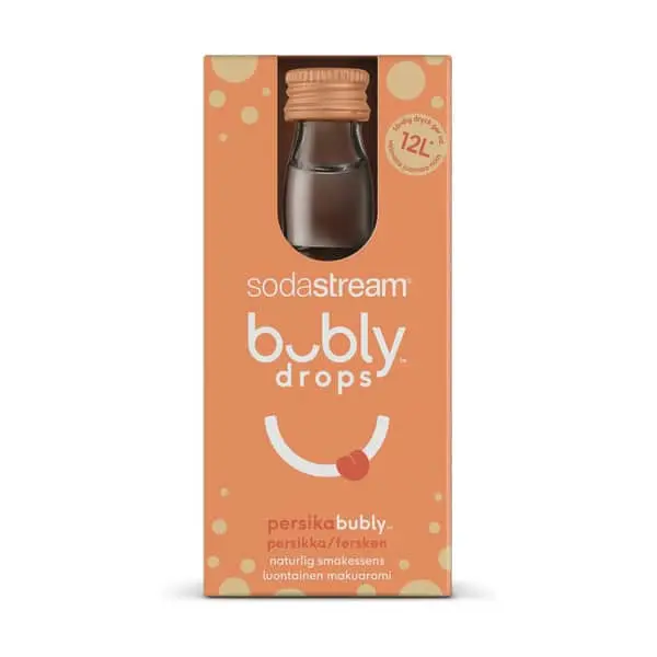 Løft din oplevelse med frisklavet danskvand med disse SodaStream Bubly™ dråber med en lækker smag af fersken. Det er som sommer i et glas!