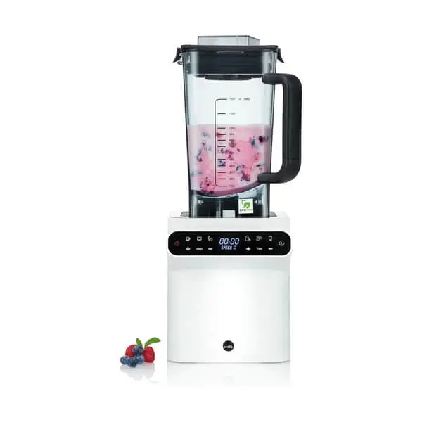 Med blenderen kan du varme dine ingredienser op. Blenderen har ingen varmeplade, men på grund af den høje hastighed opvarmer blenderen indholdet i kanden, hvis den kører i flere minutter (op til 10 minutter). Blenderen kan køre i 10 min. Uden at overophede ved 22000 RPM, hvor de fleste blendere kun kan køre 2-3 minutter. Desuden kan du nemt blende dine varme supper og sauce, da kanden kan tåle temperaturer op til 100°C.