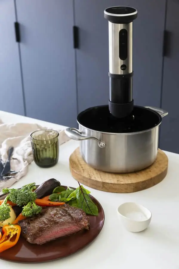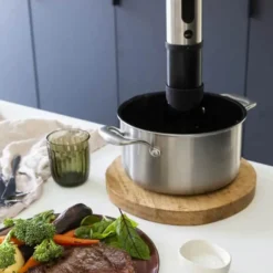 Staven sættes direkte ned i et vandbad, hvor de vakumpakkede råvarer befinder sig. Lad sous vide-staven gøre arbejdet og du har et mørt og lækkert resultat.