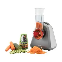Det er nemt og hurtigt at lave en frisk salat med Witt Classic Salad Maker. Maskinen har fem funktioner i form af smarte, udskiftelige rivejern. Du får et fint og et groft rivejern, et fint raspejern og et rivejern til lige og et til bølgede skiver. Rivejernene tåler opvaskemaskine.