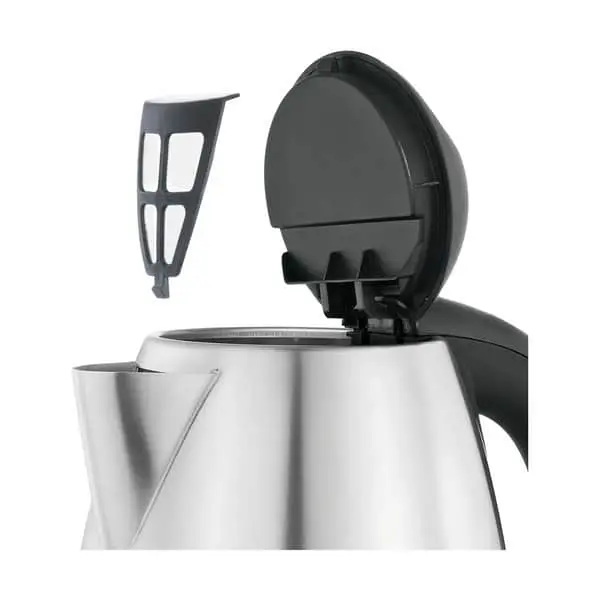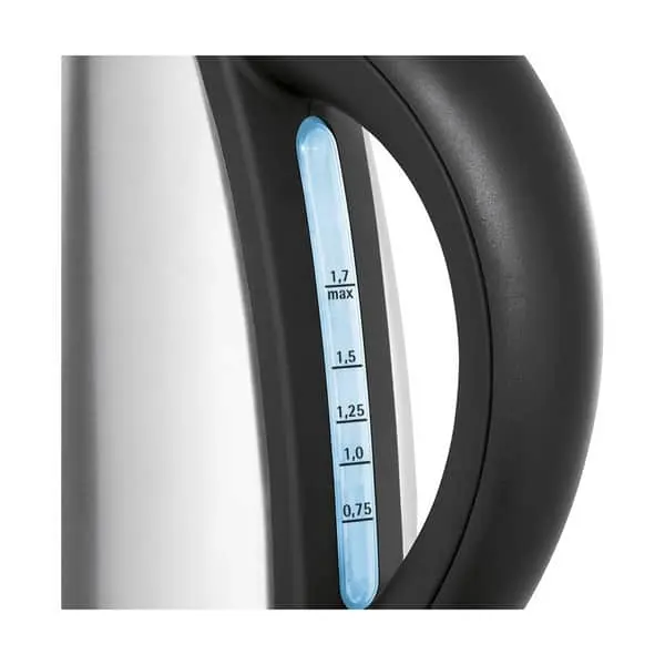 Bueno kedel fra WMF har et skjult varmelement i rustfrit stål og 2.400 watt, så du behøver ikke vente længe på at opvarme 1,7 l vand. Af smart ekstraudstyr har den blandt andet et belyst synligt vandniveau-display, et aftageligt og vaskbart kalkvandsfilter og et behageligt håndtag. Takket være tørløbs- og overophedningsbeskyttelse, automatisk kogepåvirkning og låsedæksel er kedlen meget sikker. Kedlens ledningstromle er placeret i den separate apparatbase.