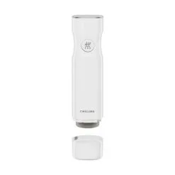 Med Zwilling Fresh & Save vakuumpumpen får du et flot og ledningsfrit design, som er pladsbesparende i forhold til andre vakuumapperater. Desuden er den lydsvag, og klarer vakuumeringen med ét tryk. Vakuumpumpen kan nemt genoplades med det medfølgende USB-kabel.